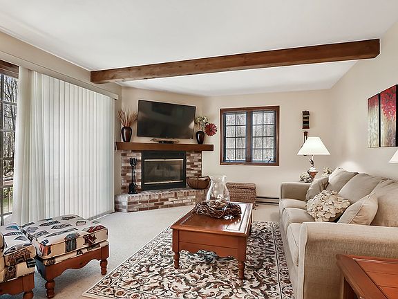 Location, location! Lovely 2 bedroom, 1 and 1/2 bath lower end unit with all living on one floor, with beautiful wooded views in all directions and a short walk to downtown Sister Bay and it's wonderful amenities. You will enjoy the fireplace, in-ground pool and much more. The Sister Bay Beach, marina, shops, restaurants, library, dog park and winter sports complex are all footsteps away. Owners upgraded the HVAC to include electric furnace and central air conditioning for muggy nights. This home comes fully furnished and appointed, down to dishes and linens---move right in and enjoy for the summer of 2020. Weekly rental is allowed, and the Seller has included a Home Warranty Package. This one won't last, call for a private tour today.