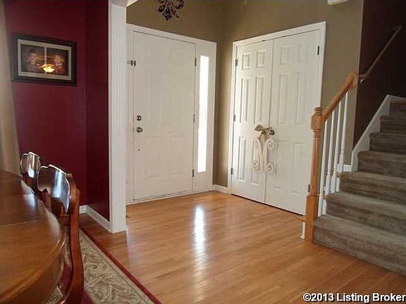Rare, wrap-around porch on this lovely two story home on quiet cul de sac in family friendly neighborhood. Large private, fully fenced back yard with basketball court. Two car attached garage off the laundry/mud room leading to large eat in kitchen with pantry and half bath. Formal dining room accessible from foyer and kitchen. Hardwood flooring in foyer, dining room and kitchen. Newly carpeted great room with gas fireplace. Two story foyer with large entry closet. Vaulted front bedroom on second level, full hall bath, second bedroom and unfinished bonus room over garage. (Framed, insulated w/ HVAC: ready for drywall.) Master bedroom with two large walk in closets. Master bath with large whirlpool tub, shower, linen closet and double sink vanity. Finished basement with large carpeted living area. Custom wood bar/dining area with half bath (plumbed for full) and closet. Storage area with HVAC.