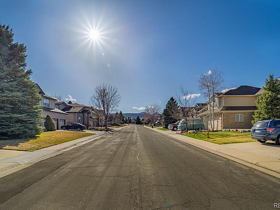 Welcoming 2-Story on Quiet street in sought-after Canterbury-Meadows with Mountain View! Professionally Updated! High ceilings and abundant Newer Triple Pane Windows bring warmth and natural light throughout. Main Level boasts Gleaming Brazilian Hardwood and 5 Plank flooring. Grand foyer with removable tiled inlays (granite) that is set into hardwood floors. Open Great Room features a towering wall of windows, stacked brick fireplace. Sunny kitchen with generous Cabinetry, soft-close roll out drawers, two pantries, high end Granite counters with a mobile island featuring Leather Granite; Large Bay Windows in Nook. Formal Dining adjoins Kitchen and Living Room, Main level Office with double French doors just off entrance. Entry features High Ceilings and a beautiful leaded glass entry door. Master Retreat with En Suite 5-piece bath, soaking tub, and walk-through closet. Main level Laundry/Mud Room with built in shelving and utility sink. New Roof 2019, AC approximately 2011, TESLA SOLAR paid in full w/transferrable warranty! Huge 4 Car Tandem Garage. Plenty of Basement Storage. A bird's haven and gardener's delight with terraced landscape, mature Apple, Evergreens, Spruce, Roses, Columbine, Honeysuckle, Vinca, Holly, Boxwood, and more. Garden Shed, Tool Shed, Firewood and non-working Water Feature are included. Community events, Concerts in the park. Blocks to Award Winning Ute Elementary, Meadows Golf Course, nearby local's favorite eateries and close to Chatfield State Park and Reservoir. Easy access to C470 for the mountains or the city!