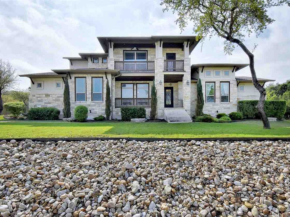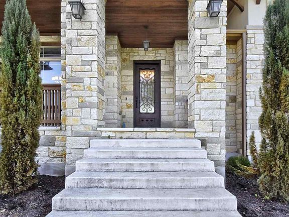 Located in the gated neighborhood of Overlook Estates, this custom home offers tremendous hill country views from the expansive front balconies! With 5 bedrooms, 4 baths, and 2 living areas there is ample space for entertaining friends and family. An ideal floor plan features the master suite on the main floor complete with double vanities, spa-like bath, and private access to the backyard. The kitchen is open to the living area and features a large island with stainless steel appliances, spacious pantry, and breakfast nook. The formal dining room is adjacent to the kitchen with a large picture window allowing lots of natural light. A spacious study resides on the main floor as well and could also be used as a sixth bedroom. Mostly main floor living, the upstairs offers two guest bedrooms and a gameroom with covered patio. Sitting on over an acre lot, the backyard is an oasis with a beautiful custom pool, large covered patio with fireplace and a great built in outdoor grill area. Complete with a 3 car garage, this luxury home offers everything you could want and more!
