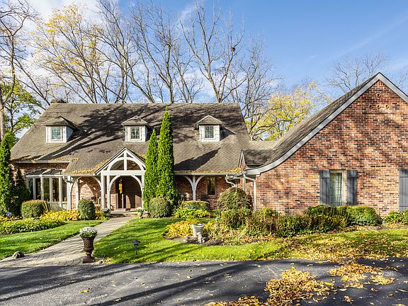 Resting above the iconic 13th green of Pete Dye's exclusive Crooked Stick Golf Club, this classic brick home offers wide vistas and ample entertaining space inside and out. Its extensive main floor is warmed by rich hardwoods and beamed ceilings and flooded with natural light by 3 sets of French doors and large windows overlooking its ample rear patio and lush 1.26 acre parcel. Recently constructed main-level primary suite is private and quiet with many well designed details including vaulted ceilings, rear patio access, expansive ensuite bath, and custom closet ideal for keeping any homeowner organized. Updated upper level boasts new flooring throughout and large bedrooms. Traditional lower level space includes large bar for entertaining. A rare opportunity perfectly situated along sought after Crooked Stick Lane overlooking the golf course!