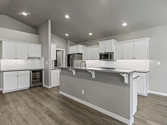 Beautiful brand new construction home located in Star. 2000 sq. ft. 3 bedrooms with dedicated office or fourth bedroom. 2 bathrooms, 3 car with extra deep garage. Engineered hardwood & quartz countertops throughout. Kitchen features gas range, coffee bar and wine bar, complete with mini fridge. Beautiful fireplace in the great room, dual vanity in master, white cabinetry & white linen light fixtures throughout. Kitchen boasts extra large pantry. Refrigerator and washer/dryer included. Darling private, covered patio. Tenant to pay utilities. No pets permitted.