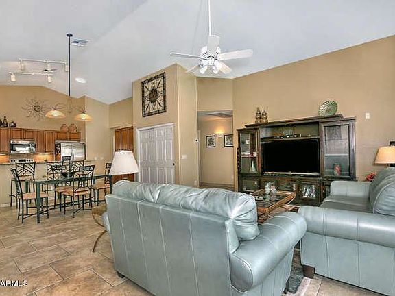 WOW!! This one is a Keeper & it Comes Completely Furnished! Pack your bags, move in, & dive in to your spectacular heated pool in your very own back yard Resort! This meticulous home is spacious, bright & open & has everything you could want. Features large over-sized Bedrooms, separate Living, Family, & Formal Dining Rooms, Plantation Shutters, Vaulted Ceilings, Surround Sound Pre-Wire, Loads of 20'' Brick Set Tile, Updated Fixtures, Eat-In Kitchen w/Island/Breakfast Bar, Granite Slab Counters, Back-splash, Pantry, Stainless Steel Appliances Incl., Smooth-Top Range & Micro, Maple Cabinets w/Under Cabinet Lighting, Soft Water & R/O Systems, Solar Tubes in Kitchen, Newer HVAC, Heated Pool, Travertine Deck & Patio, Washer Dryer Included & more..!!