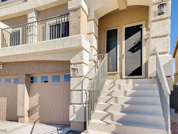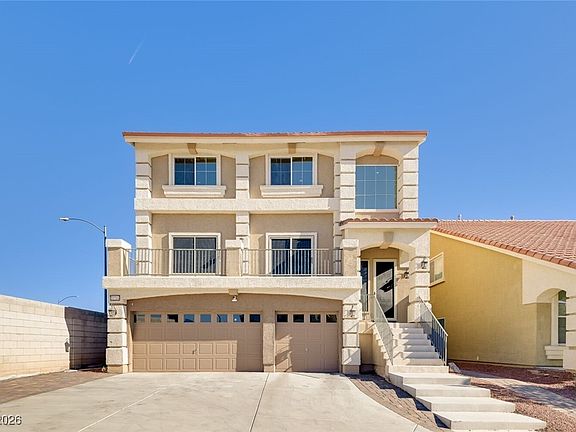 Gorgeous 5 BR/4.5 Bath/3 Car Garage/3 Story Home in Cul-de-sac,Exceptional Indoor/Outdoor Living! Enjoy breathtaking Views of the Strip & Mountains from many points of home including right off a Spacious Balcony, Resort Style Backyard: Covered Patio, Heated Pool & Jacuzzi w/Waterfalls that is controlled Remotely by Wi-Fi, & Tiki Hut, Versatile layout for Big Family/Multi Gen Fam, 2 Primary BR's on 1st & 3rd level.All bedrooms have walk in closets. 3rd level Primary BR has Sep Shower/Sep Tub, 2 Walk in Closets, 1st Level PR has Shower w Rainfall Water Spout, Kitchen: Island, Garden Window, Walk-in Pantry, Oversized Fridge, Kitchen flows right into the Family Rm that has modern Fireplace. Upgraded 7.1 surround sound speaker system in Living Rm w/ Modern Fireplace, Next to 1st Level Primary BR is currently a Private Gym, or could be used as a Theatre Room, All appliances are included as well as Water Softener system!! Boss Security Screens for Windows & Doors, Solar System, Low HOA!