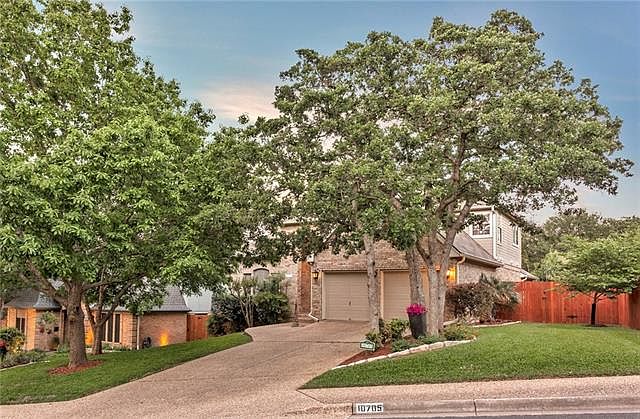 Exquisite doesn't even begin to do this 4 bed, 2.5 bathroom home justice. With a beautiful brick exterior and two-story entry nestled among graceful trees in Great Hills, this home makes an excellent first impression. Elegant leaded glass transom windows and sidelights add subtle sparkle as you approach the front door. And that's just the beginning. Designer upgrades throughout the home include extensive crown molding, stunning marble and travertine tile, custom cherry cabinets with soft-close, plantation shutters & parquet floors. The separate main-level master retreat features coffered ceilings, bay window, large stand-alone soaking tub, frameless shower, and generous walk-in closet. Upstairs includes 3 spacious bedrooms, a large game room equipped with surround sound, and a full bath. The oasis-like backyard is not to be missed with a large composite deck, playscape, private garden with raised beds, and fragrant jasmine and elegant roses. You'll love this elegant home.