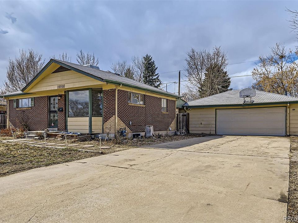 This home is a fixer upper with excellent potential. Easy cosmetics on the house will bring it up to par. The main fix up item on the home is the roof. So plan on budgeting for a new roof and roof decking. There is Oak Hardwood Floors throughout the main level. All appliances are included as well as the washer and dryer. Great Bay Window in the front living room. The basement is finished with a 3rd non conforming bedroom, A Full bath with a nice ceramic tile, a huge open family room with a Rock fireplace. There is a newer tankless water heater. The garage is a fabulous 2 car with a shop. There are work benches, lighting, drywall and a gas heater that does need a little work to get up and running. Also some shelving up in the rafters and a newer utility shed out back. The home has a large fenced yard, a covered patio that runs the length of the house and many off street parking spots. Large enough for RV Parking.