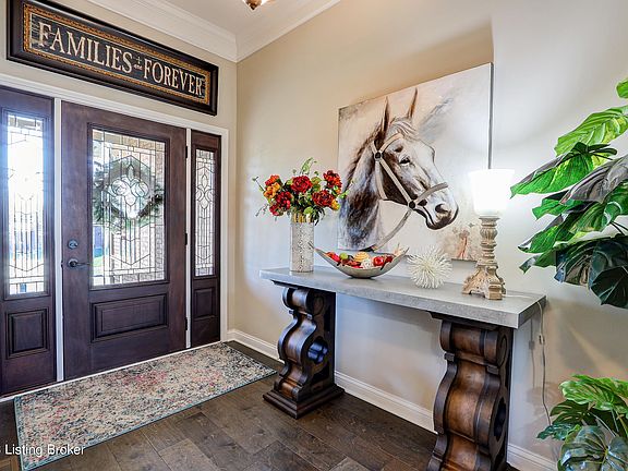 Gorgeous like new ranch home ideally located on the east end of Louisville between Billtown and Bardstown Roads. The property sits conveniently on a quiet cul de sac. The home offers a 1st floor primary suite with a walk-in shower, double vanity and a walk-in closet. Lots of windows provide excellent natural light. Open concept kitchen, large dining area and family room. The kitchen boasts granite countertops, subway tile backsplash, a center island/breakfast bar, white shaker cabinetry, pantry and stainless steel appliances. Wide plank wood flooring throughout the foyer, hallways, kitchen, dining area and family room. Beautiful exposed staircase with iron balusters leads to the cozy and functional level lower. It offers a large family room with a fireplace with custom wood built-ins and cabinetry, a bedroom or office, a full bath and plenty of extra room for your game tables. Lots of storage areas. Great backyard outdoor space with large covered patio and extended patio with covered gazebo. Fully fenced in large flat yard ideal for pets and family activities.