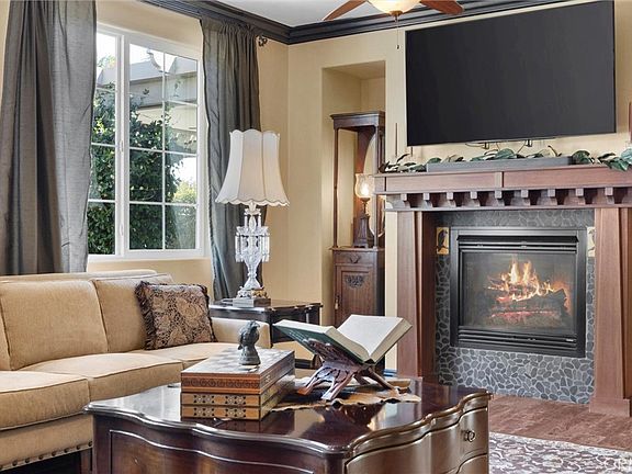 It all begins the moment you walk in. This 3-bed, 2-bath, 2,046 sq ft home in Juliana's Garden greets you with a sense of elegance and intention. A dramatic, library-inspired entry sets the tone with floor-to-ceiling bookshelves and a grand arched wood door. At the center of the living space, a dramatic fireplace steals the spot light its Mahogany mantle and artisan tile blending bold design with everyday warmth. The primary suite offers dual sinks, a soaking tub, and a separate tiled shower for a true retreat. Quality carpet adds comfort to each bedroom, while Cool-Wall exterior paint still shines after 7 years. Paid solar offers energy efficiency, and the backyard provides full block-wall privacy for relaxing or entertaining. Every finishfrom the woodwork to the tile has been curated to create a home that feels both grounded and extraordinary, delivering an experience that's not just visually stunning, but deeply felt, inside and out.