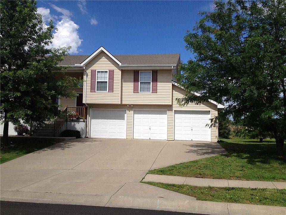 RARE opportunity to own three car garage duplex (3 cars each unit for 6 total garages per building) with three cars allocated to each side of this three bedroom, two bath, three-car garage property located in the highly desirable Staley high school district. Within minutes of highways, shopping the airport and highly desirable amenities. Tenants are on month to month leases. Roof replaced in 2023, newer HVAC, flooring replaced in 10708 within last two years. Do not disturb tenants do not approach property without contacting the listing agent first. OWNER AGENT Market rate rents $1600 per unit as they are , upgrades could likely draw $1900-2000 based on the 64155 zip code.