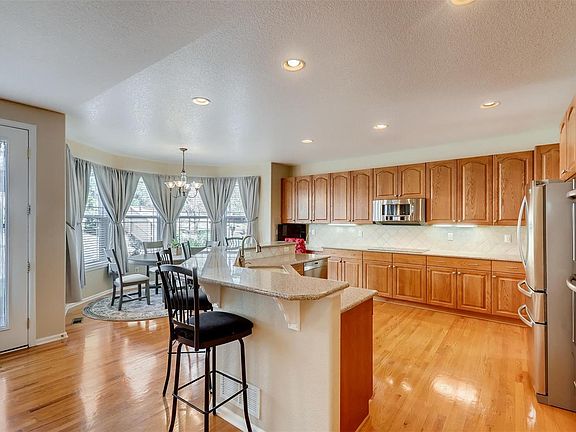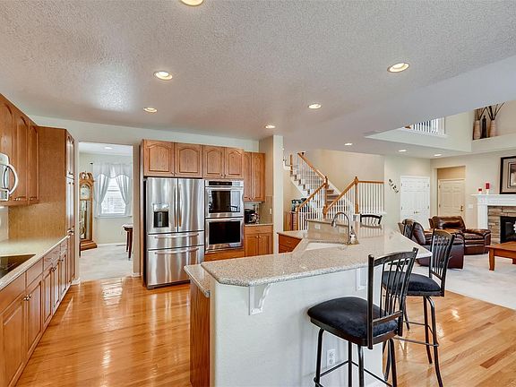 A true gem in the Firelight neighborhood. Chef's kitchen with granite countertops, bar seating, eat in area and new stainless appliances including double ovens. Main floor boasts an office (or formal living), dining room, beautifully lit living room with vaulted ceiling, a bedroom and full bath. Upstairs you will find a generous master suite with coffee bar, large walk in closet, 5 piece bath and quaint balcony, 3 additional bedrooms and 2 additional baths. Nicely finished basement with wet bar, sweet theater system, built ins and full bath. 3 car garage. Enjoy all the Highlands Ranch amenities - walk to rec center! Green and energy efficient with solar panels by SunRun - only $67 a month. This home is impeccably clean and priced to sell!