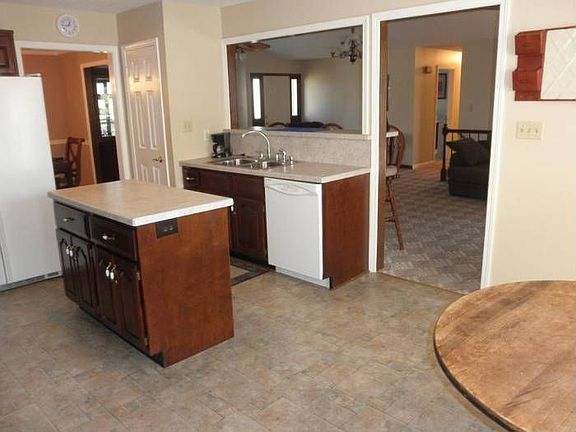 Spacious walkout raised ranch with large great room open to the kitchen and a formal dining room. Kitchen remodeled in 2004 with new cabinets, countertops and appliances. 1st floor master opens to the deck and has a great bath with new tile and a faux marble tub for two. New tile and a faux marble vanity top in hall bath. Lower level offers a large family room, another room perfect for an office or a guest bedroom, half bath and the laundry room with a sink and toilet. New boards on oversized private deck which may be accessed from the great room or master bedroom has stairs to the patio, built-in seating and is partially covered. Most rooms repainted and home shows very well.