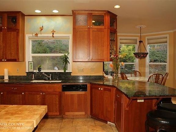 Luxurious Sanctuary!Top quality home in exclusive Stonebridge Estates, end of the road privacy. Attention to detail. Designer paint with many special touches and scenes. Lots of hidden storage areas. Ultra gourmet kitchen with solid Cherry cabinets, granite counters, stainless appliances and computer nook, which opens into the large living room with a gas fireplace, entertainment center with surround sound. Huge formal dining room. Doors with transom windows and skylights make this home light and bright. Master suite has cove lighting, 2 walk-in closets, private deck with view of the waterfall. Master bath has steam/sauna shower, dual shower heads, his and her vanities, and a Jacuzzi tub that over looks the forest with wonderful privacy. Jack and Jill bedrooms with a full bath that offers a bidet. Guest bed has it's own full bath.Wrap around covered deck, private backyard with water feature,fenced pool and garden areas make this home great for entertaining, yet easy to maintain.
