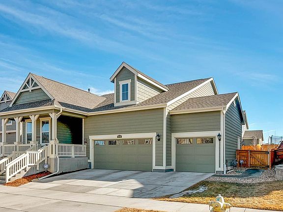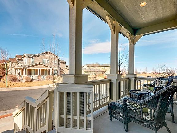 This 2 year old home is steps to Reunion park with walking trails, playgrounds, lakes and recreation center with swimming pool. Decorators dream ! Massive 3 car garage fits 3 cars plus oversized golf cart. Fully fenced yard extensivley landscaped with large maple and aspen trees. Lovely screened porch off great room at rear of home. Front porch faces west and features views of Longs Peak. Great room with stunning floor to ceiling fireplace opens to kitchen with stainless steel appliances, large walk in pantry with 42 inch solid maple dark cabinets with subway tile backsplash and a massive granite island! A chief's delight !! Seperate dining room. 8 ft doors, solid oak floors throughout first floor except 3 first floor bedrooms.Crown moulding throughout. Floor to ceiling bookcases in main hallway with hidden storage. Master bedroom has tray ceiling plus gorgeous wall of windows. 5 piece master bath leads into huge walk in closet with direct access to laundry room. Lower level has oversized 4th bedroom and office space. Lower level bath features Jacuzzi tub, shower and double vanity and linen closet. Large rec room is the perfect space for football or movies! Small kitchen ready to supply cold drinks and popcorn, ice cream or hordouves incudes dishwasher microwave and fridge!! Plenty of storage as well in the unfinished section of basement area. Whole house water filtration system and humidifier. Close to shopping, highway, airport and Platte Valley Hospital.... this house has it all...even pre-wired for solar!!!!