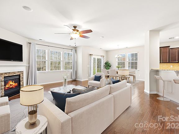 Welcome to Waterford On The Rocky River in Davidson. This home is located in this highly sought after neighborhood that features a Community Pool, Rocky River Greenway Trail access, Playground and Sidewalks. This amazing floorplan features a dual primary bedroom layout, one on each level of the home. Both are oversized with a private dual sink bathroom and walk in closets. Main level features all your primary needs with flex office space, half bath, laundry, kitchen, dining, living room, garage and one of the primary bedrooms. Open kitchen with island, slider door to stone patio and firepit, cozy fireplace in living room, pre finish wood flooring through the main living areas. Private laundry room with additional storage. Upstairs greats you with a bright loft and 3 large bedrooms that include the optional primary or bonus room. The neighborhood sits out in a country setting all while conveniently located to schools, grocery store, shopping and more.