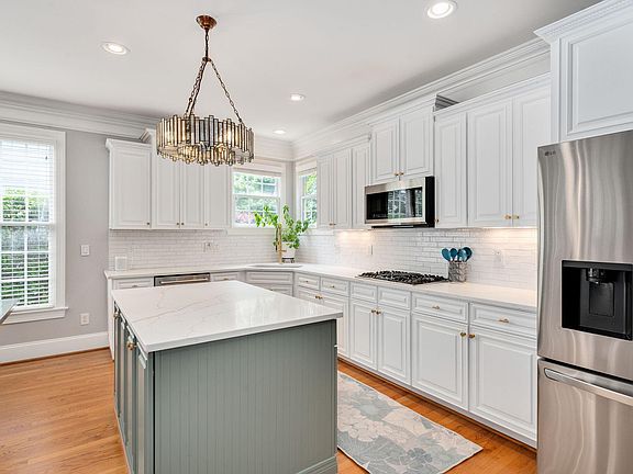 Beautiful open floor plan! Main floor guest suite. Chef's kitchen upfit in 21' w/Quartz and tile backsplash, stainless appliances, centerisland & desk. Spacious breakfast area that opens to sunroom. Grand Primary retreat w/trey ceiling, cozy sitting room, 2 walk-in closets & spa bath. 2nd Floor Flex Room. Finished3rd fl w/full bath & wet bar. Screened porch & fenced back yard. Wraparound front porch. New Landscape uplighting. Recent paint and carpet throughout, added site finished hardwoods steps and hallway up. New light fixtures DR, Kitch, Eat-in. New Ext Paint 23'. ADT security and Google Fiber. Across the street from pools, tennis, pickleball and playgrounds! Restaurants, bar and shops walkable. Showings start 5/9.