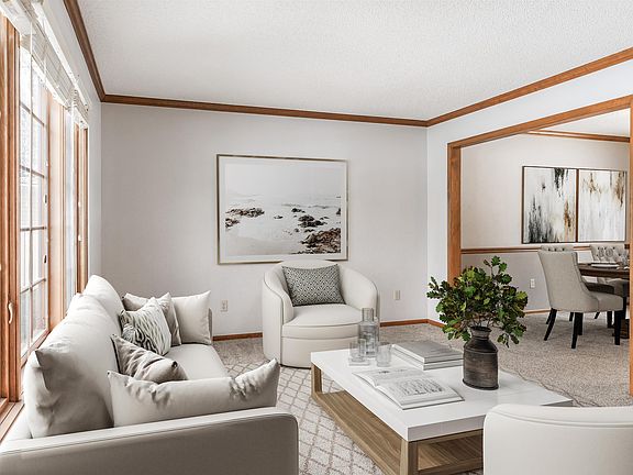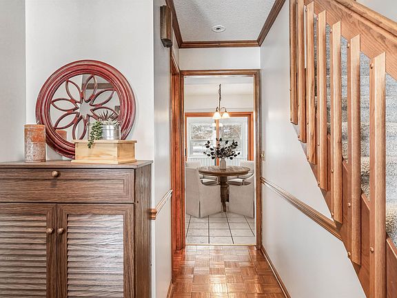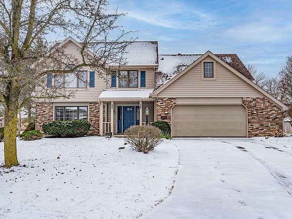 Welcome home to this charming, updated 4-bedroom, 2.5-bath home, perfectly situated at the end of a quiet cul-de-sac with a generously-sized, private backyard and located in the sought-after Leo school district. Step inside to discover versatile living spaces that cater to your every need, including a dining room that sets the stage for memorable meals, a cozy family room that invites relaxation, and an impressive great room featuring vaulted ceilings, a stunning floor-to-ceiling fireplace and large sliding glass doors that seamlessly connect the indoor space to the expansive backyard. The eat-in kitchen boasts a fresh aesthetic, highlighted by fresh, neutral paint (throughout the home too!), ample cabinet space, and built-in desk/catch-all. The adjacent sunroom, accessed by sliders off the kitchen, is surrounded by walls of windows inviting natural light and access to your concrete patio and additional outdoor enjoyment. Upstairs you'll find all new flooring leading to the bedrooms, including the primary suite w/a large walk-in closet, large vanity, and a second full bath off the hallway. A sprawling loft area, with bonus attic storage, offers additional flexibility—ideal for use as a fourth bedroom, playroom, home office, or recreational space, allowing you to tailor the home to your lifestyle needs. Enjoy all the amenities this community has to offer! River Bend Bluffs features 3 community pools, a playground, tennis courts, walking trails and beautiful ponds.