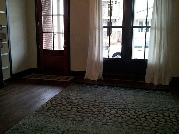 This beautiful new Nortons Commons home was custom built by Meridian Construction for the current owners and it is evident no detail was missed. Upon entering the front door of this all brick bungalow you will notice the large feel created by the 10' ceilings, 8' foot doors, hand hewn wood beams, and an abundance of natural light. The real hardwood flooring flows nicely through the open kitchen and dining area. The custom built cabinets are equipped with dovetail drawers and soft close hardware and topped with a beautiful leathered finished granite counter top. Stepping into the master suite your attention will be immediately drawn to the had built barn doors that separate the bedroom from the spacious master bath. The finished basement is perfect for entertaining. The stained concrete