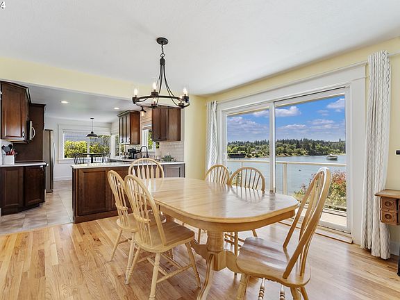 Welcome to your new oasis on the Willamette River. This entertainers delight comes with stunning views of Elk Rock Island. Great views from both levels allow you to watch wildlife and boats passing by. This daylight ranch is located just south of Waverly Country Club and features 3 bedrooms on the main level and 2 bedrooms on the lower level, a formal dining area, 2 kitchens, family room, both gas and wood burning fireplaces, bonus room, and large storage room, It has hardwood floors and central air for the main level which is new in the last 6 months.Enjoy the ousdoors from your deck and patio as well as direct access to the Willamette River and approx 140 feet of river front. It is located on a private road close to downtown Milwaukie and max line and is just minutes from downtown Portland and Sellwood. Milwaukie river front park is nearby. Buyer to verify sq. feet. County tax record shows different footage. [Home Energy Score = 3. HES Report at https://rpt.greenbuildingregistry.com/hes/OR10231285]