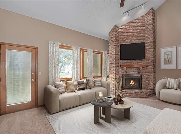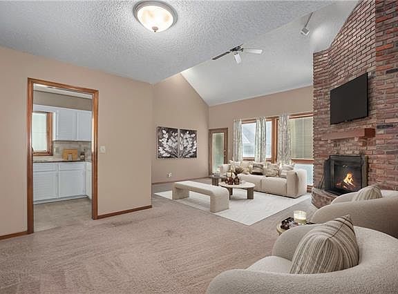 - Features: Carpet, Ceiling Fan(s), Fireplace