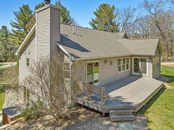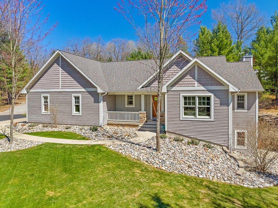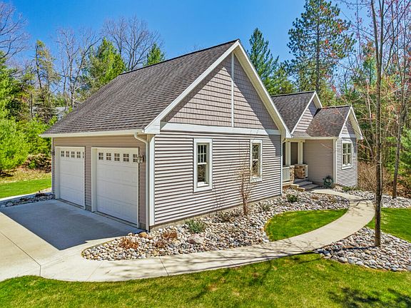 This beautiful custom home was built in 2007 and is located within walking distance of Higgins Lake at Maplehurst Road-end. It's a rare find to have a home in a subdivision on an acre lot on a private cul-de-sac. This one-owner home has so much to offer! It has over 3000 square feet of generous living space on the main level and in the lower level, including two kitchens, four bedrooms, three bathrooms, a large open living space with surround sound in the main living room, hardwood floors throughout, two fireplaces (one wood, one gas), an attached two-car garage with attic storage and cold/hot water, plus an additional 24x32 garage with a large door for boat or camper storage. The home is also wired for a back-up generator. There is a nice landscaped retaining wall with a firepit and a path to the hut tub where you can enjoy the outside speakers in the backyard. Not a detail was overlooked!
