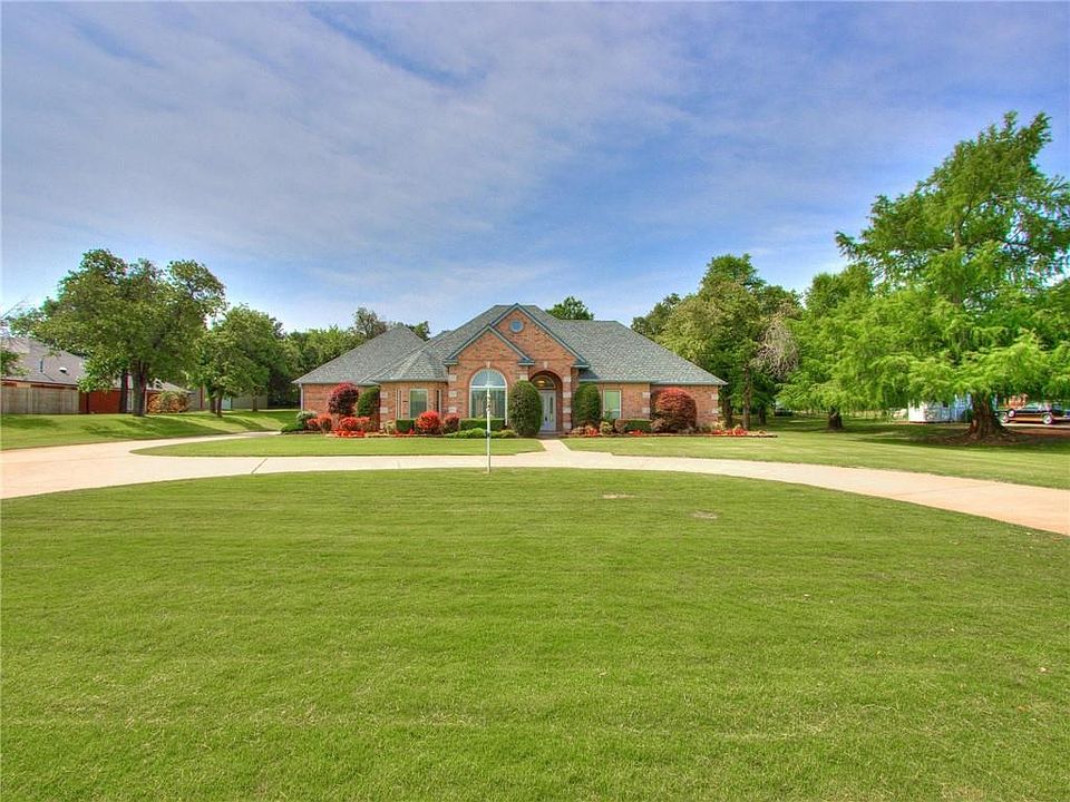This beautiful, well maintained home has it all & then some! Sitting on 1 acre in a quiet, desirable neighborhood with easy access to Tinker, shopping, & restaurants. This elegant home is spacious on the inside and out and move in ready! Large primary suite with a very spacious bathroom equipped with a walk in shower, whirlpool tub, and access to the back patio. Very spacious utility room! Bedrooms with walk in closets. The kitchen is light and airy featuring a built in ice maker, huge pantry, & beautiful cabinets. The office has incredible built ins. This home has many unique features including a built in vacuum, intercom with radio & doorbell, a built in staircase for easy attic access, a sink in the spacious 3 car garage, a water manifold, sprinkler system, and shed. The roof is 1 yr old & the HVAC was replaced less than a year ago plus a 1 year home warranty transferrable to buyer at closing. Mounted TV in the living area stays! Schedule your showing today!