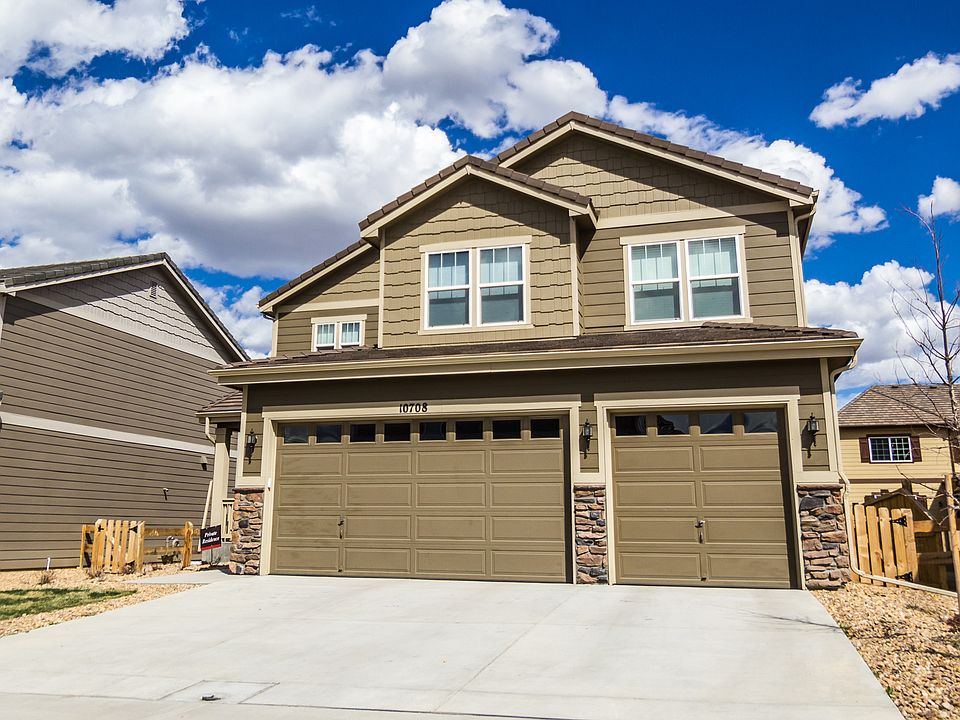 Gorgeous 5 bed, 4 bath home in Parker! On the main floor, there is an open concept great room with a fire place and high-end wired-in speaker system; gourmet kitchen with double-oven, granite counter-tops, a center island and walk-in pantry; as well as a formal dining room for entertaining. The main floor has great guest accommodations with a convenient bedroom and full bathroom. Upstairs, there is an open loft living space, 4 bedrooms and 3 bathrooms. The master suite includes a deluxe Jack & Jill en suite with his and her closets. The separate laundry room is also conveniently located upstairs. The property includes an attached 3 car garage, unfinished basement with rough-in bath and 9 ft ceilings. Spacious 200 ft concrete deck in the backyard. It is walking distance to parks and trails as well as incredibly quick and easy access to the Denver Tech Center,