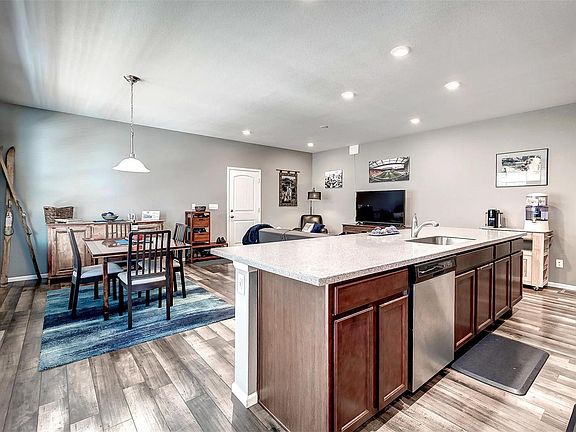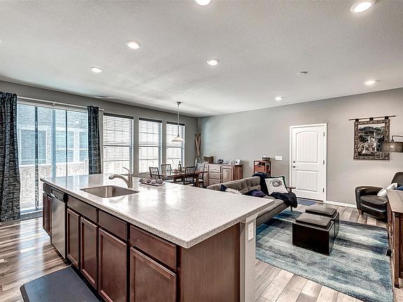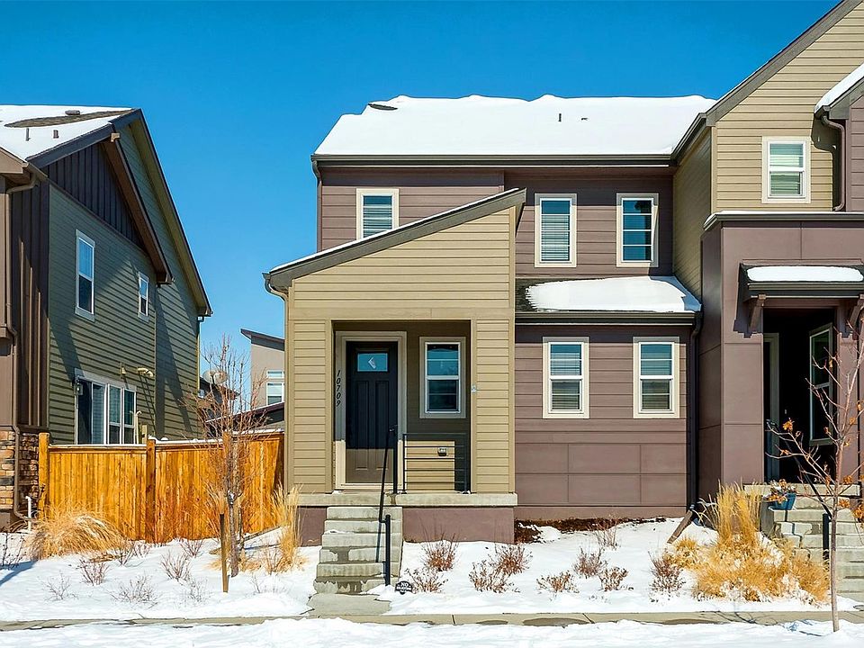 Killer paired home in AWESOME Bluff Lake Community! The main floor offers contemporary style with open floor plan & kitchen perfect for entertaining. Beautiful upgraded wood floors, slab corian counter-tops, massive kitchen island & full pantry. Convenient 2 car attached garage. Upper level has fabulous Western views. The huge master has walk-in closet, master bath and upgraded rain shower. Over-sized second bedroom adjacent to a full guest bath & laundry room w/storage & built-ins. The top floor rounds out with rare loft perfect for relaxing. Outside is the recently landscaped privacy fenced side yard. Full unfinished basement perfect for additional storage & ready to be built out! ***Other upgrades: Kitchen Aid Double Oven Gas Range (Stainless Steel), Kitchen Aid Under Cabinet 600 CFM Commercial Style Hood, Ceiling Fan Pre-wire in all rooms, Rough In Plumbing in Basement, 50 gallon Water Heater, Jet Tub in Master Bath, Corian Counter-tops in Kitchen and Master Bath***