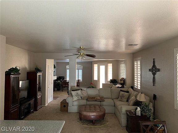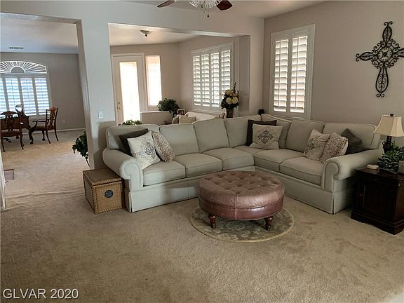 Looking for a nice clean SINGLE story home located in the heart of Summerlin then look no further! This home has 3 bedrooms, 2 baths, living, dining, family room, shutters throughout the home. Breakfast nook, bright kitchen, refrigerator, washer and dryer included. Covered patio out back, 2 car garage with shelving, this will be a great place to call "HOME".