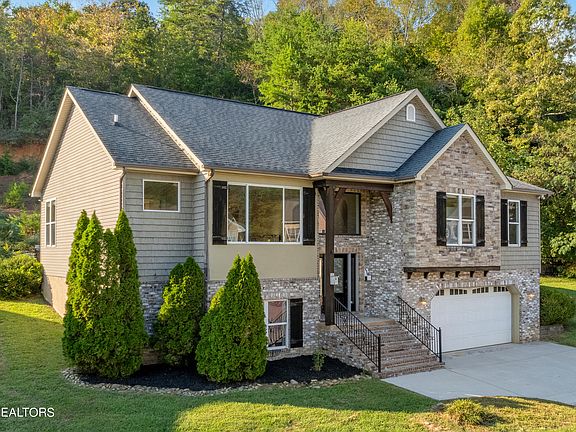 Welcome to your thoughtfully designed dream home in Farragut, just minutes from Turkey Creek shopping! Nestled on a quiet cul-de-sac, this stunning 4 bed/3 bath home boasts exceptional curb appeal with its stone, brick, and shake siding exterior, complete with craftsman-style shutters and a beautiful 3/4 light front door with sidelights. Situated on an expansive 0.76-acre double lot, this property offers plenty of privacy and room for outdoor enjoyment, and a fenced backyard.