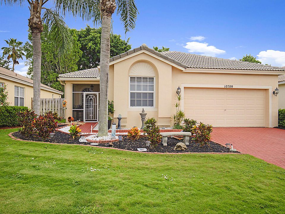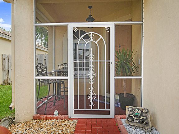 Must See! Welcome to this move-in ready 3bedroom, 2bath, 2-car garage home that's been newly landscaped. When you enter the home you are greeted by 9-foot ceilings along with impact windows and doors. Enjoy the spacious master bedroom with a large walk-in closet and private on-suite, tile flooring throughout the main areas, and an open-concept kitchen with a large separate dining area. Walk outside to the Lanai you will enjoy the newly screened-in patio along with tropical plants and your fully fenced-in private backyard. Year Home Warranty transferred to buyer at time of closing. LOW HOA!! The community comes with 3 serene pools, a well-equipped gym, and a clubhouse. Great location right across from the Wellington Mall.