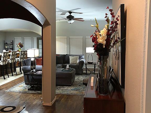 Large lot with outdoor fireplace and grill. Nicely landscaped and includes a Rain Guard sprinkler system. Backs to treed reserve area and walking trail. Within short walking distance to pond, parks, pool and splash pad. Open floorplan, high ceilings, 3 bedrooms and 2 baths down, large bonus room up. Open formal dining space. New Samsung range, refrigerator, and microwave. New roof July 2018.