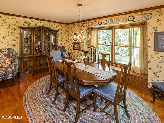 As you approach the Vaughan Estate, a private pond & a beautiful entrance lead you down the paved drive & park-like setting to set the stage for this remarkable property on 14.5 acres. A one-and-a-half story home of wood, stone, & vinyl welcomes you with two main-level garages plus a basement garage. A large outbuilding with four high garage doors is ideal for vehicles, a motor home, farm machinery, or recreational toys. Inside, a leaded-glass entry door opens to wood floors with a custom turkey inlay. The great room features a soaring cathedral ceiling, two-story stone fireplace with wood mantel, a window seat, & a large built-in. Multiple sliding doors connect to the expansive stamped-concrete deck overlooking the acreage. The formal dining room is generous in size, while the breakfast dining area flows into a chef's kitchen with abundant cabinetry, solid-surface counter, island with cook top & eating area, & premium appliances. The main-level master suite boasts a luxurious bath with double vanities, soaking tub, tiled shower & a massive walk-in closet with pass-through to the oversized laundry. Upstairs are 2 additional bedrooms with a jack-and -Jill bath, plus cedar-lined storage. The lower level includes a family room,, full bath, storage, workshop, secondary kitchen & garage. Outdoor living is unmatched with stamped-concrete porches, an outdoor kitchen with an upscale TEC Grill, gardens, fruit trees, pasture, & rock quarried from the land itself. Added amenities include irrigation system, pet fencing, kennels, central vac, & more. This estate blends comfort, functionality, & natural beauty into a rare opportunity to own your own private paradise.