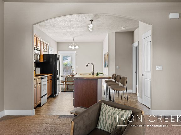 HIGHLIGHTS: Open floor plan with abundant natural light Kitchen island with breakfast bar great for cooking and gathering Fully fenced backyard with raised garden beds ________________________________________ DETAILS: Step into this bright and inviting 3-bedroom, 2-bathroom home with an open layout that maximizes both function and flow. The living room welcomes you with natural light and connects seamlessly to the kitchen and dining area, creating a perfect space for daily living. The kitchen features a large island with a breakfast bar and plenty of counter space. Just off the dining area, sliding doors lead to a concrete patio and a fully fenced backyard, complete with two raised garden beds. The split-bedroom floorplan provides privacy, with the primary suite on one side and two additional bedrooms on the other. A washer and dryer are included for your convenience. Located with easy access to Eagle Road and I-84, you're minutes from dining, shopping, and an easy commute into Boise. Front lawn care is handled by the HOA, giving you one less thing to think about. Lease terms: - Tenant to pay all utilities, Owner pays HOA. - HOA is responsible for front yard mowing, tenant is responsible for side & back yard maintenance. - Appliances: Refrigerator, stove, oven, microwave, garbage disposal, washer, dryer - Up to 2 dogs under 25 lbs. considered with pet screening. One-time pet fee of $200 per pet and monthly pet rent of $40 per pet apply. All pets must be screened and approved. No pets under 12 months of age, restricted breeds or exotic animals. (Does not apply to assistance animals) - 2 car garage - No-smoking or vaping anywhere on premises - Section 8 and vouchers not accepted. SUMMARY SCREENING CRITERIA - - 680 + credit score - - 3x rent to income ratio - - Positive rent history - - Verifiable work experience - - Pass criminal background check Application fee is $40 for each occupant 18 years or older. Pet screening is $30 per pet. Assistance animal requests are verified at no charge. We strongly recommend you or someone you trust tours the property in person before applying. Most properties have been lived in before and have some imperfections which can be noted on the move in condition form. We do our best to ensure the information in this listing is accurate but is not guaranteed and may be changed without notice. Renter to verify all information.