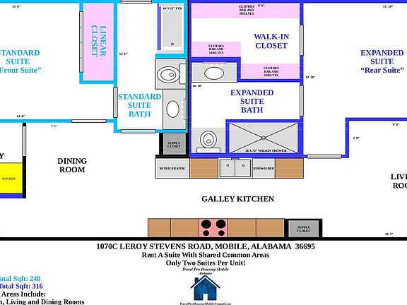 Standard Suite with Main Front Entry: 248 SqFt