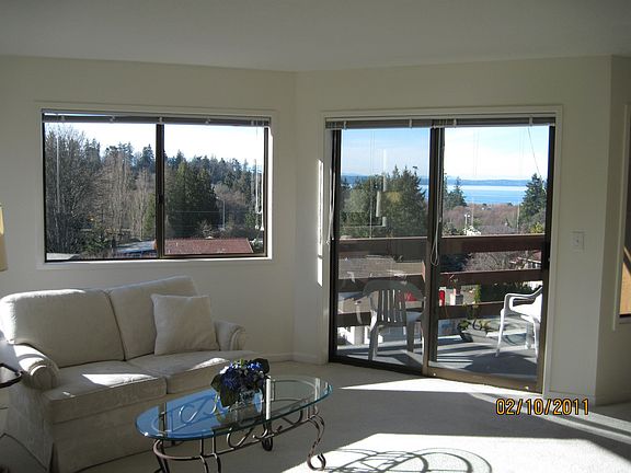 Come see the view from this wonderful condo. Price Reduced!!-Lowest priced View condo in Edmonds bowl!! Picture yourself watching the ferries, mountains and sunsets from your top floor, corner unit condo in the bowl in downtown Edmonds. Security building on residential cul-de-sac street within walking distance of nearly anything you would need. Immaculately maintained inside and out, newly renovated 916 sq. foot one bedroom, one bathroom, with a fabulous view! Large living room and dining room looking out over the water. Extra large bedroom and huge closet. Private balcony for bar-b-cuing and enjoying sunsets. Hardwoods in kitchen, new flooring in laundry. New sink, toilet and flooring in bathroom. Wood fireplace. All appliances, including ceramic top stove, refrigerator, dishwasher, microwave, and full sized front-loading washer and dryer. Amenities include: Security building with lobby and Intercom, covered parking plus extra parking for guests, elevator, large separate storage unit in building, fitness room, guest suite for visitors, Pets welcome. Neighborhood Description Very close to downtown Edmonds-- 4 blocks to restaurants, theater, shopping, post office, ferry terminal, and Sounder to Seattle or Everett. Secure condo in nice neighborhood.