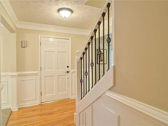 Brick front home with lots of curb appeal in Kingston Square neighborhood. This home is ideal for entertaining with the oversized deck & screened in porch. Welcoming front entry with wrought iron balusters on staircase. Neutral paint color inside and recently painted exterior. Cement siding, two high efficiency HVAC units (8 yrs young), and newer hot water heater. All rooms have double crown molding. Three bay windows & plantation shutters throughout. Attic is partially floored for extra storage. Garage features epoxy flooring for durability. Great location! Walk to shopping, 9-hole golf course, and transit bus system. Minutes to downtown Woodstock.