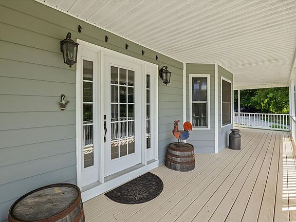 Modern comfort, country charm that is listed under recent appraisal! This stunning 4-BR, 3-bath home sits on ~12 acres and features custom cabinets, Corian countertops, hardwood and tile floors, and a wood-burning stone fireplace. An over-sized custom laundry/utility room provides workspace/storage. A spacious kitchen, dining area, family room, and upstairs bonus area provide ample living space. Rest easy in the primary suite located on the main floor that boasts picturesque views from the large windows. Outside, cozy up in the fire pit area, bird-watch on the wrap-around porch, dine out on the stamped concrete patio or relax in the 78-jet hot tub. Or simply take in the natural beauty, abundant wildlife. A 32' x 56' insulated barn w/ 16' finished ceiling, built in 2024, includes a separate septic system, 200-amp service, water and plumbed for you to make this space your own. This is your unique opportunity to own a beautifully updated country home.