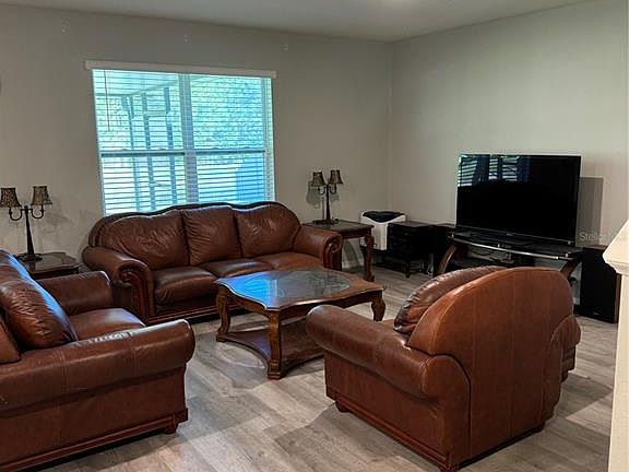 "Step into this stunning two-story single-family home, offering 5 generously sized bedrooms and 3 luxurious bathrooms. Located just 15 minutes from the world-famous Disney parks, this property presents a rare opportunity for those seeking both comfort and convenience. From the moment you arrive, you'll be captivated by the inviting front porch an ideal spot to sip your morning coffee while soaking up the warm Florida sunshine. Inside, the home is spacious and bright, with open living areas that seamlessly flow from room to room, creating a welcoming atmosphere for both relaxation and entertaining. Step outside into your own private retreat. The backyard is a true oasis, featuring an enclosed porch perfect for lounging, barbecuing and beautiful views of the pond, or hosting gatherings with family and friends. This home is more than just a place to live it's a lifestyle. Don't miss out on the chance to own a slice of paradise in one of the most sought-after areas of Florida." The home can come furnished or the furniture can be moved into the garage.