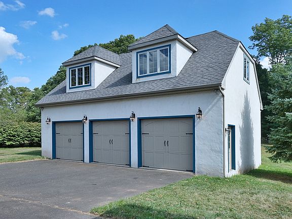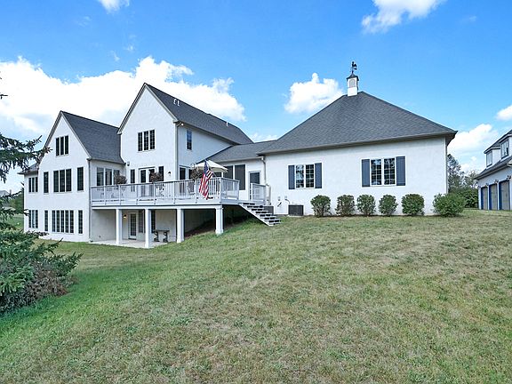 Success has its rewards and this showcase estate property in the pastoral hills of Buck County is one of those rewards. The unique French Country design makes a bold statement to the discriminating buyer looking for that extraordinary one of a kind property. Set on an idyllic 9.57 picturesque acres overlooking the bucolic countryside and inviting spring-fed pond. The lush tree-lined driveway welcomes you to view this dramatic 6790 SF (includes stunning finished, walk-out daylight lower level) home. Enter through the dramatic European style stone turret, one of the focal points of the architectural design into the inviting foyer flowing into the striking, two story great room with abundant windows and stone wood burning fireplace. Wonderful sun-filled dining room for more formal entertaining with access to spacious deck and pond views through two sets of French doors plus additional French doors to screened porch. Authentic replicated farm house kitchen with breakfast area, exposed beams, brick gas fireplace, contrasting decorator custom cabinetry, expansive island, granite counters, tumbled marble backsplash, farmhouse sink, Wolf six burner gas range, Sub-Zero refrigerator, wall oven, built-in microwave, 2 dishwashers and walk-in pantry. Convenient 1st flr master retreat with 14 ft ceiling, gas fireplace, abundant windows, 2 walk-in closets one with spiral staircase to private, hideaway den with exposed beams. Master bath includes Jacuzzi soaking tub, 2 custom farmhouse style vanities, large tumble marble shower with two shower heads, separate commode room. Exceptional, impressive staircase leads to the 2nd flr with an additional 2 bedrooms and full bath with free standing tub and shower. Appealing lower level provides additional gracious living with walls of windows in every room. Expansive family room with gas fireplace, custom built-ins and adjoining study with ceramic tile floor and private entrance. Powder room w entrance to private gym. Large 4th bedroom with walk-in closet leading to full bath and separate exterior entrance. Additional luxurious features include extensive recessed lighting, attractive molding and 12" planked wood floors throughout 1st and 2nd flr. First flr laundry and powder room with vessel bowl sink. Attached oversized 2 car garage and detached 3 car garage with car lift and unfinished 2nd flr with an additional approximate 800 SF for a variety of potential uses, 4 zone HVAC w additional 5th zone possible. What a wonderful life-style awaits you!