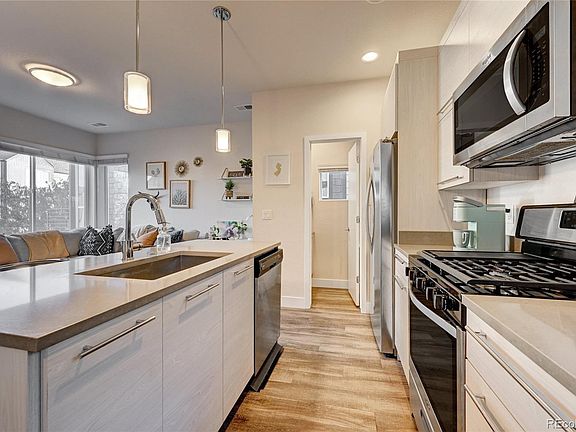 Discover contemporary living in this stylish 2019 townhome located in the heart of Lakewood, Colorado. Just blocks away from convenient public transportation and the scenic Sloan's Lake, this modern residence is poised to become your ideal home. Enjoy the sleek design featuring quartz countertops, stainless steel appliances, and luxurious LVP flooring. The updated bathrooms add a touch of sophistication, while the attached 1-car garage provides convenient storage. Don't miss the opportunity to make this modern townhome your own!