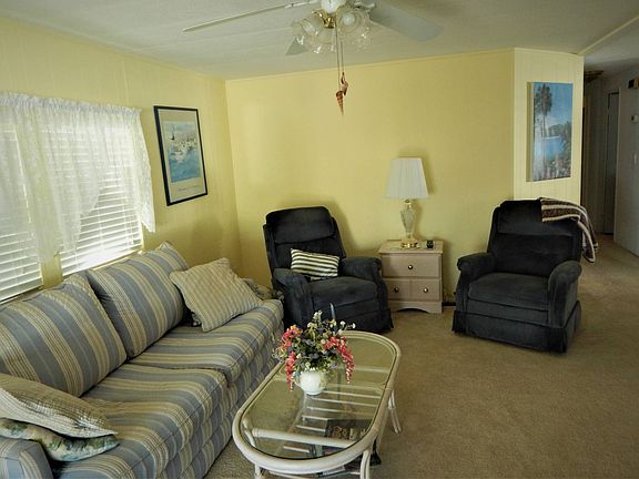 Immaculate 2 bedroom home is completely furnished and ready for you to enjoy. Just stop by the grocery store on your way in. Everything you need is already here. Kitchen contains a full pantry and lots of counter and cabinet space with a pass through window which allows easy entertaining, and the dining room is large enough for your dinner parties with table space for 8 guests. Main bedroom has ensuite bathroom area, with lots of closet space. there is a large open screen room at the front perfect for afternoon cocktails with roll down awnings in place. a large carport provides lots of parking space as well as room for outdoor seating as well. The living area is spacious and completely tastefully furnished and includes flat screen TV. The shed contains washer and dryer, and has been completely insulated and has window air conditioning for use as a hobby room and still room for storage. The roofover has extra insulation which has been extended to include the shed as well. Lincolnshire Estates is a most desirable 55+ pet friendly resort style community that is close to beaches, shopping, restaurants, golf courses, parks, and medical facilities. There is a beautiful large pool, spa, modern fitness center and updated clubhouse with many activities year round. Up to 2 pets of 30 pounds are welcome as well Hurry! this home will not last