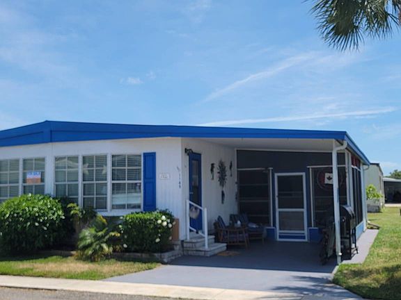 If you're looking for a newer and beautiful 55+ Resort style, pet friendly community that is close to beaches, shopping, great restaurants, medical facilities and golf courses then Lincolnshire Estates is the place to call home! This community has it all...gorgeous pool, spa, fitness center and new clubhouse with activities galore for the residents! Up to two Pets are welcome up to 30 lbs each.The monthly lot rent of $720 includes weekly lawn mowing and edging, trash and complete use of the recreational facilities. This Turnkey 2/1.5 home features plank flooring in the kitchen and Dining room, carpet in the living room and bedrooms along with modern open cabinets, movable center island, roof over, beautiful bay windows and refurbished ch&a. Enter in to the home from your covered carport in to your open concept Kitchen/Dining/Living Area. The Kitchen has been recently updated with modern open storage style cabinets, movable center island with storage, fresh paint and comes complete with a stove/oven combo, microwave, refrigerator and dish washer. The Dining Area is nestled right off the kitchen/living area and comes complete with a table that will expand for 8 guests. The Living Area is spacious and fully furnished with a couch, love seat, 2 recliners, coffee table, end tables and t.v. The Main Bathroom has recently been updated with a beautiful new vanity, fresh paint, new glass front cabinet doors and a tub/shower combo. The Guest Bedroom sits next to the main bathroom making it perfect for any guest and comes complete with 2 twin beds, dresser and nice sized closet. The Master Bedroom features new carpet, good sized closet, a queen bed, dresser, t.v and a private ensuite half bath. Outside of this lovely home you will find a very nice screen lanai with a storage shed complete with washer and dryer along with an additional storage area, roof over roof, completely refurbished a.c, new duct work, driveway for 1 car parking and a spacious lot. This home will not last long... Call Chris today to schedule a showing or place an offer! All listing information is deemed reliable but not guaranteed and should be independently verified through personal inspection by appropriate professionals. All Florida Mobile Home Sales Inc. cannot guarantee or warrant the accuracy of this information or condition of this property. The buyer assumes full responsibility for obtaining all current rates of lot rent, fees, and pass-on costs. Additionally, the buyer is responsible for obtaining all rules, regulations, pet policies, etc., associated with the community, park, or home from the community/park manager. All Florida Mobile Home Sales Inc is not responsible for quoting of said fees or policies