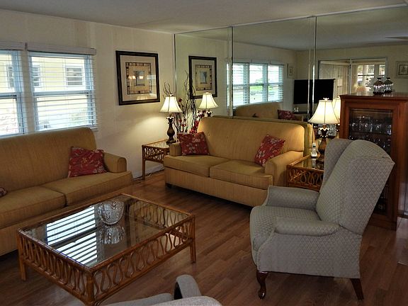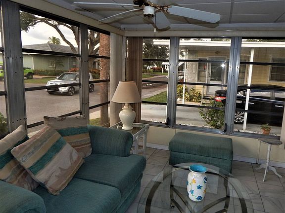 Fully furnished turn-key home is just waiting for you to move in. Just stop by and pick up your groceries on the way, and you are ready to enjoy Florida at it's best. Enter from the carport through the ceramic tiled screen room and into the open kitchen with plenty of all new cabinets and marble like counter tops and all your appliances. A roomy dining area looks out the front, and a quick turn brings you into the large open living room area, complete with large flat screen TV. Down the hall you will pass the main bath with full tub, and enter the main bedroom on the left with its walk in and his & hers closets, and the ensuite bath with walk in shower. At the end of the hall is the roomy guest bedroom with its own his & hers closets and built in dresser. For your relaxing time at home, step out the sliding glass door in the living room to the enclosed front porch with ceramic tile floor, or go through it to the outer covered porch. There is also a large screened room behind the carport which also is tiled, and contains another mounted flat screen TV. through the screen room you will find the storage shed with the washer and dryer and will also notice the large new hot water heater. This home is located in Lincolnshire Estates, the most desired 55+ five star community in Pinellas county. Lincolnshire Estates is located near Largo Central Park, the performing arts center, close to shopping, beaches, hospitals, and restaurants - but still in a quiet area of Largo. The community is very active with golf leagues, bowling leagues, dances and many programs for those who are interested - or just lay back and enjoy. There is a pool, hot tub, gym, clubhouse, library, shuffleboard and more. The community is pet friendly. The monthly fee is only $775, which includes all amenities, trash compactor and lawn care.