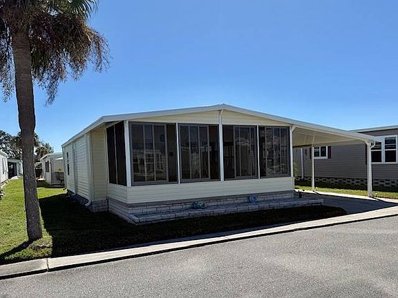 This is a really special home! The 10x24 Sunroom on the front of the home sets it apart from any others! This space is a big bonus that is perfect for entertaining friends, or personal meditation. The room is surrounded by large vinyl double insulated windows that slide open, allowing you to enjoy the Fall breeze & sunshine! Another nice bonus is the large deep carport which is long enough for 2 full sized vehicles. Around the back of the home, there is yet another outdoor area which is perfect for backyard gatherings and barbeques. Inside the home, you'll discover a very comfortable cozy space. The eat in kitchen has been nicely updated with a mobile center island. The kitchen is open to the living room which is open to the sunroom - natural light abounds! The primary bedroom includes an updated ensuite bath and large closet. The guest bedroom shares its own updated guest bath. Updates include newer vinyl double insulated windows, vapor barrier (2024), HVAC (2024), Washer/Dryer (2024), Sunroom Windows (2023). Overall sqft includes the sunroom! The home is being sold partially furnished! You're going to want to call this one home! Lincolnshire is a 55+ age restricted community, and all prospective buyers must be approved.