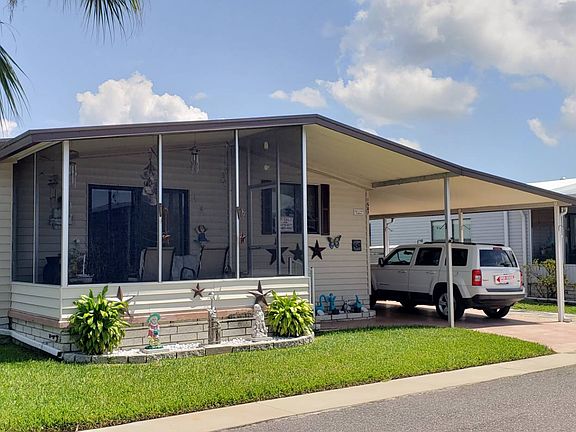 If you're looking for a newer and beautiful 55+ Resort style, pet friendly community that is close to beaches, shopping, great restaurants, medical facilities and golf courses then Lincolnshire Estates is the place to call home! This community has it all...gorgeous pool, spa, fitness center and new clubhouse with activities galore for the residents! This stylish, large home features the highly desired screened in porch everyone loves! The exterior features easy to care for vinyl siding, a covered carport and not one, but TWO screened in porches! All of the AC ducting was replaced in 2016 and the AC was replaced in 2014. It boasts two very large bedrooms and two bathrooms with an open concept dining room and living room that flow from the kitchen. The kitchen features light colored laminate cabinets and counter tops with laminate cabinets and an eat in breakfast. Enjoy the natural light from the great window over the sink. Enjoy making breakfast while the spouse reads the paper and keeps you company. The dining room has a built in storage buffet and will easily accommodate a six person table. The living room is very bright and sunny with the double slider door access to your adorable front porch. The front porch always gets great shade and cool breezes and is the perfect place to sit and watch the Christmas golf cart parade pass! Just a short walk down the hall and you will find a very nice sized main bathroom with plenty of storage. Across from the Main bathroom is the generously sized guest bedroom with walk in closet and tall vaulted ceilings. The Master bedroom is enormous and features closet space galore with the huge walk in closet, linen closet and wall closet all located within the master! It also has a double vanity sink in the dressing area which flows into the bathroom with stand up shower. Make sure you see this one today, it won't be here tomorrow! Pets are welcome up to 30 lbs each. The monthly lot rent of $657 includes weekly lawn mowing, edging, trash and complete use of the recreational facilities. All listing information is deemed reliable but not guaranteed and should be independently verified through personal inspection by appropriate professionals. All Florida Mobile Home Sales Inc. cannot guarantee or warrant the accuracy of this information or condition of this property. The buyer assumes full responsibility for obtaining all current rates of lot rent, fees, and pass-on costs. Additionally, the buyer is responsible for obtaining all rules, regulations, pet policies, etc., associated with the community, park, or home from the community/park manager. All Florida Mobile Home Sales Inc is not responsible for quoting of said fees or policies