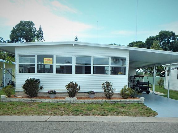 A quick stop at the grocery store and you are ready for your Florida life. This home is ready to go. Fully furnished with new laminate and new carpet. Clean neutral colors through out. Your golf cart is parked in the carport with plenty of room for 2 more cars. Large open living room and dining area and spacious main bedroom. A sun room extends across the entire front of the home. Back yard is completely private along the outer perimeter of the park. Lincolnshire estates is a most desirable meticulously maintained active 55+ community located minutes from the gulf beaches, shopping centers, hospitals, Central park & performing arts and golf courses. Enjoy peaceful country living with the convenience of city life. State of the art fitness center, large pool & hot tub and a large clubhouse with regularly scheduled events throughout the year. Relax in your own privacy, or be active in the community. Park is pet friendly.