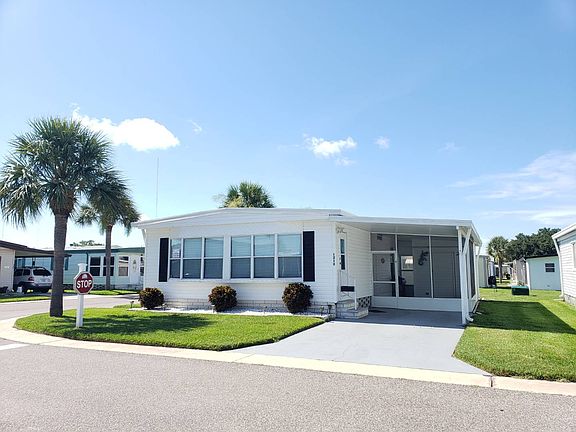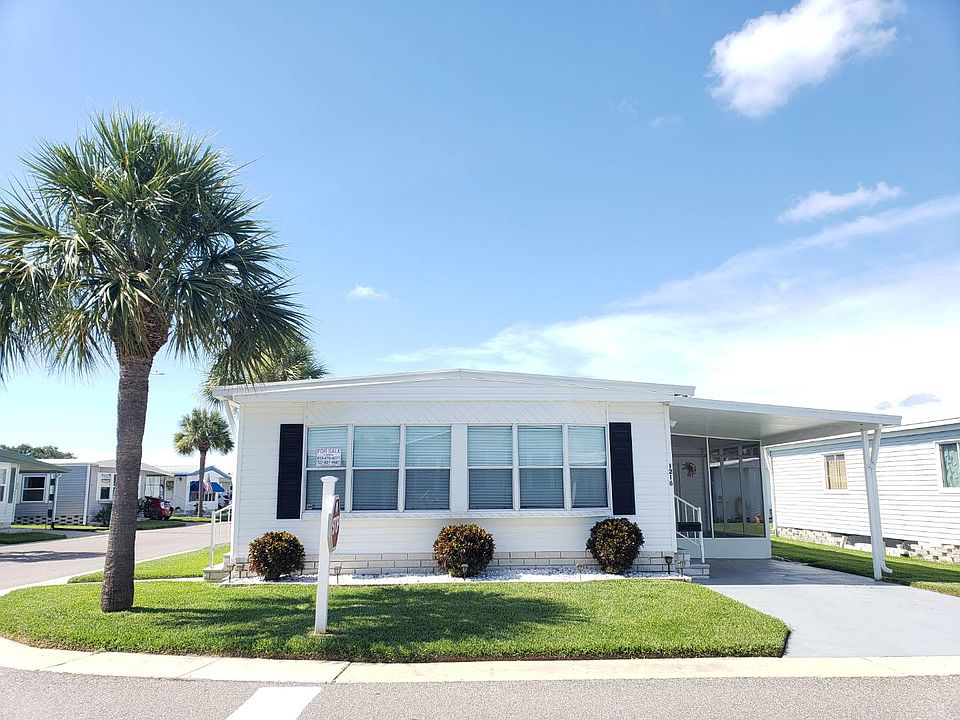 If you're looking for a newer and beautiful 55+ Resort style, pet friendly community that is close to beaches, shopping, great restaurants, medical facilities and golf courses then Lincolnshire Estates is the place to call home! This community has it all...gorgeous pool, spa, fitness center and new clubhouse with activities galore for the residents! Up to two Pets are welcome up to 30 lbs each.The monthly lot rent of $657 includes weekly lawn mowing and edging, trash, irrigation water and complete use of the recreational facilities.-----This TURNKEY, UPDATED 2 BEDROOM, 1 AND A HALF BATHROOM home is SUPER CLEAN, COZY AND MOVE IN READY! The exterior of this home features a METAL ROOF OVER, LOW MAINTENANCE VINYL SIDING and it is located on a very generous CORNER LOT! You will LOVE the SCREENED IN PORCH as it gets shade most of the day and your pets will love it too, it is the puuuurrrrfect hang out! Also located within the screened in porch you will find a storage shed with WASHER AND DRYER! You won't have to leave home to do the laundry! Upon entering the home you will be impressed by the WIDE OPEN CONCEPT FLOOR PLAN with living/dining/kitchen combo which is perfect for entertaining! Gray LAMINATE FLOORING THROUGHOUT is easily maintained and beautifully matches THE modern decor! UPDATED LIGHTING FIXTURES, FANS and EXTRA STORAGE CLOSETS are also a plus and this home has all three! The KITCHEN features updated laminate counter tops with white cabinets and deep stainless sink, raised faucet and sprayer. The Appliances are all white and the MICROWAVE IS MOUNTED OVER THE STOVE to save space. DINING AREA is perfectly situated in front of the BAY WINDOWS and comes complete with a table for 4! The Guest Bedroom is perfect for any guest with a wall closet and freshly painted walls, it is located right next to the main bathroom for easy access. The Master Bedroom will fit up to a KING SIZED BED and features a WALL MOUNTED FLAT SCREEN TV THAT STAYS WITH THE HOME along with NICELY UPDATED ENSUITE HALF BATH. This home has it all!--------- Call Chris today to schedule a showing, place an offer or for additional information! ---------All listing information is deemed reliable but not guaranteed and should be independently verified through personal inspection by appropriate professionals. All Florida Mobile Home Sales Inc. cannot guarantee or warrant the accuracy of this information or condition of this property. The buyer assumes full responsibility for obtaining all current rates of lot rent, fees, and pass-on costs. Additionally, the buyer is responsible for obtaining all rules, regulations, pet policies, etc., associated with the community, park, or home from the community/park manager. All Florida Mobile Home Sales Inc is not responsible for quoting of said fees or policies