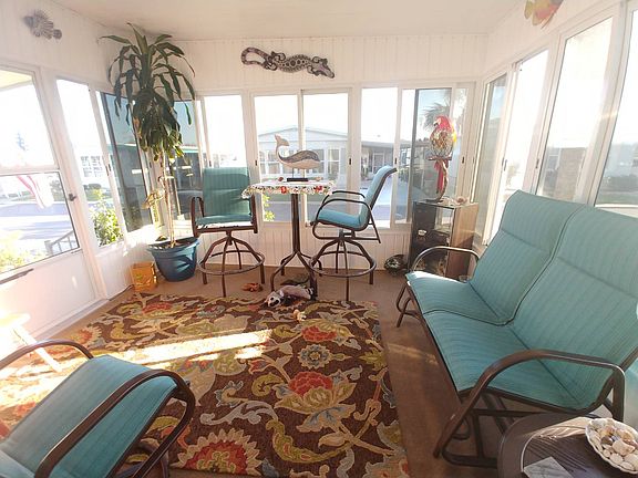 If you're looking for a newer and beautiful 55+ Resort style, pet friendly community that is close to beaches, shopping, great restaurants, medical facilities and golf courses then Lincolnshire Estates is the place to call home! This community has it all...gorgeous pool, spa, fitness center and new clubhouse with activities galore for the residents! Up to two Pets are welcome up to 30 lbs each.The monthly lot rent of $634 includes weekly lawn mowing and edging, trash and complete use of the recreational facilities. This adorable 2 bedroom, 2 bath beach cottage is updated and upgraded! Enjoy years of peace of mind with a shingled roof, new laminate wood flooring, new AC and windows! On the outside, the home has vinyl siding, covered carport for two cars with a shed that features washer and dryer hook ups, PLUS a lovely, screened in patio on the front of the home! Enjoy shade and cool breezes all day! Enter the home into a stunning open kitchen that flows perfectly into the eat-in dining area with beautiful bay windows! Kitchen has been updated with ceramic tile flooring, new soft close cabinets, Corian counter tops and Corian sink with stainless appliances! The dining area will easily fit a 4 person table and flows nicely into the living room. The spacious, open living room features freshly painted wood panel walls, laminate floors and a double slider door access to the fantastic screened in patio! Master bedroom is large with deep walk in closet and wood laminate flooring and currently holds a nice queen sized bed suite comfortably with room to spare! It also features a full bathroom with a step in shower, tile flooring and updated vanity. Guest bedroom is good sized with wood laminate flooring, has a walk in closet and freshly painted walls to decorate and make your own! Access to the main bathroom is just outside so your guest can feel like they have a bathroom of their own. This home has it all! Call Chris today to schedule a showing, place an offer or for additional information! All listing information is deemed reliable but not guaranteed and should be independently verified through personal inspection by appropriate professionals. All Florida Mobile Home Sales Inc. cannot guarantee or warrant the accuracy of this information or condition of this property. The buyer assumes full responsibility for obtaining all current rates of lot rent, fees, and pass-on costs. Additionally, the buyer is responsible for obtaining all rules, regulations, pet policies, etc., associated with the community, park, or home from the community/park manager. All Florida Mobile Home Sales Inc is not responsible for quoting of said fees or policies