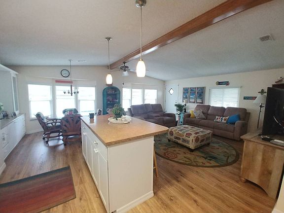 If you're looking for a newer and beautiful 55+ Resort style, pet friendly community that is close to beaches, shopping, great restaurants, medical facilities and golf courses then Lincolnshire Estates is the place to call home! This community has it all...gorgeous pool, spa, fitness center and new clubhouse with activities galore for the residents! Up to two Pets are welcome up to 30 lbs each.The monthly lot rent of $657 includes weekly lawn mowing and edging, trash and complete use of the recreational facilities. Prepare to be impressed! This TURNKEY, beautifully updated, open concept, 2/2 perimeter home features vaulted ceilings, new energy efficient windows including beautiful front bay windows, new water proof composite flooring, updated electrical, new plumbing and fresh paint throughout. Enter in to this home from your covered carport in to your Gorgeous Kitchen with a direct view of the new center island complete with additional storage along with updated cabinets, newer counter tops, matching stainless/black stove/oven combo, dishwasher and refrigerator. Directly off the kitchen is the Dining Area featuring a very nice glass table with 4 chairs and built in China Hutch for decor and additional storage. Next up your spacious Living Room complete with a couch, chair, love seat and t.v. This open concept home is an entertainers Dream!! Just down the hall you will find your update main bathroom with tile flooring, nice vanity and tub/shower combo. The Guest Bedroom is perfect for any guest and features a queen bed, dresser and night table along with a large closet. Next you will find the very spacious Master Suite complete with a queen bed, dresser, 2 night stand, walk in closet and a private en-suite with walk in shower and separate vanity. Outside you will notice the beautiful curb appeal from the start along with a screened in lanai, storage shed with plenty of storage and washer/dryer. This home has been meticulously maintained and is loaded with upgrades. Call Chris TODAY to schedule an in person viewing, virtual tour or to place an offer! All listing information is deemed reliable but not guaranteed and should be independently verified through personal inspection by appropriate professionals. All Florida Mobile Home Sales Inc. cannot guarantee or warrant the accuracy of this information or condition of this property. The buyer assumes full responsibility for obtaining all current rates of lot rent, fees, and pass-on costs. Additionally, the buyer is responsible for obtaining all rules, regulations, pet policies, etc., associated with the community, park, or home from the community/park manager. All Florida Mobile Home Sales Inc is not responsible for quoting of said fees or policies