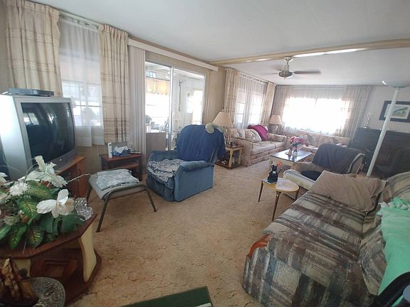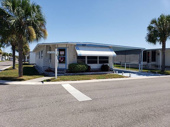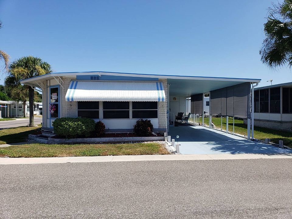 If you're looking for a newer and beautiful 55+ Resort style, pet friendly community that is close to beaches, shopping, great restaurants, medical facilities and golf courses then Lincolnshire Estates is the place to call home! This community has it all...gorgeous pool, spa, fitness center and new clubhouse with activities galore for the residents! Up to two Pets are welcome up to 30 lbs each.The monthly lot rent of $657 includes weekly lawn mowing and edging, trash and complete use of the recreational facilities. This lovely 2 bedroom, 2 bathroom unit is close to the amenities and move in ready! The home is located on a beautiful palm tree lined corner lot! There is plenty of covered parking in the carport and a handy man's dream shed! Enjoy shade and cool breezes windows on your carport with the solar reflective shades. Enter the home into a lovely open kitchen that flows perfectly into the living and dining room. Kitchen has newer vinyl flooring and features light wood colored cabinets and a neat little desk area! The spacious, open living/dining room has a mix of wallpaper and light wood panel walls and the dining room offers additional storage in the built in hutch. Living room has plenty of room for additional seating area or even an office/desk area and has double slider door access to the fantastic enclosed sun porch (All Season's Room). Enjoy having extra living space with AC when it is hot outside or open your windows in the winter when it is cool! Master bedroom is large and features 2 wall closets and built in dresser and a small walk in closet! It also features a full bathroom with walk in shower. Guest bedroom is good sized with 2 closets and a built in dresser, just right for any visitor! Your guest has access to the main bathroom also! This home is totally turn key, just move right in, it is ready to go! Call Chris today! All listing information is deemed reliable but not guaranteed and should be independently verified through personal inspection by appropriate professionals. All Florida Mobile Home Sales Inc. cannot guarantee or warrant the accuracy of this information or condition of this property. The buyer assumes full responsibility for obtaining all current rates of lot rent, fees, and pass-on costs. Additionally, the buyer is responsible for obtaining all rules, regulations, pet policies, etc., associated with the community, park, or home from the community/park manager. All Florida Mobile Home Sales Inc is not responsible for quoting of said fees or policies.